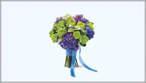 Blue flowers include lofty blue irises, puffy hydrangea and striking blue delphinium. Ask for blue blossoms in a bridal bouquet as your 'something blue,' or to cast a cool tone over an outdoor wedding reception.